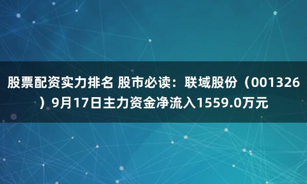股票配资实力排名 股市必读:联域股份(001326)9月17日主力资金净流入1559.0万元