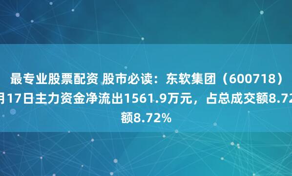 最专业股票配资 股市必读:东软集团(600718)9月17日主力资金净流出1561.9万元,占总成交额8.72%